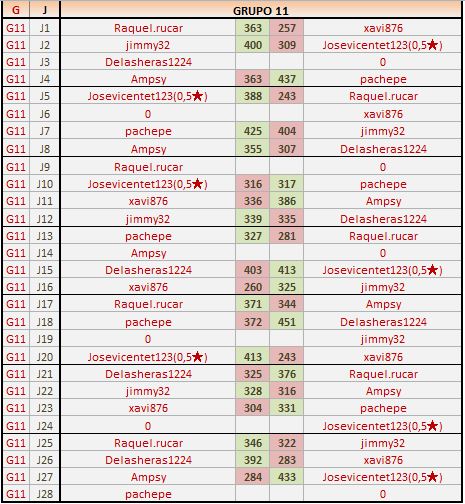 Deja un comentarioEn está página se irán publicando los resultados de las diferentes partidas, siendo ambos jugadores los responsables de subirlos, o comprobando que ya hayan sido subidos, insertando un COMENTARIO en la parte inferior de la pantalla (opción “Deja tu comentario“), indicando el nombre de los dos jugadores y los puntos obtenidos en la partida.