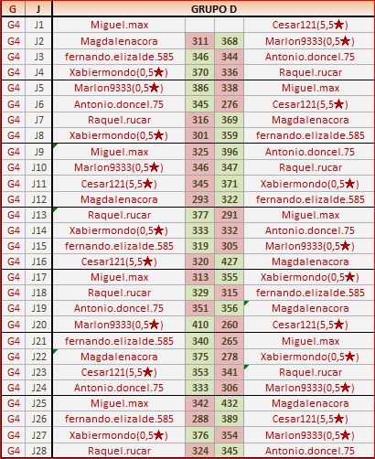 Deja un comentarioEn está página se irán publicando los resultados de las diferentes partidas, siendo ambos jugadores los responsables de subirlos, o comprobando que ya hayan sido subidos, insertando un COMENTARIO en la parte inferior de la pantalla (opción “Deja tu comentario“), indicando el nombre de los dos jugadores y los puntos obtenidos en la partida.