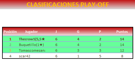 Enhorabuena al campeon! Se preveía una dura final y así a sido, sobre todo para mi jaja… felicitar a todos ya que cada vez es más difícil llegar tan lejos en las eliminatorias, y ya ganar la final tela. Espero nos veamos otra vez por aquí ;-) Saludos!