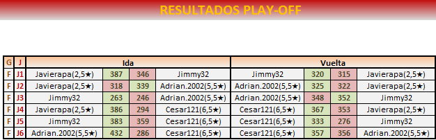 Felicidades jimmy justo ganador en un play off tan complicado enhorabuena a Adrian por el 2 puesto y que decir de Javi que hemos tenido uno la ida y otro la vuelta pateticas jajajaja