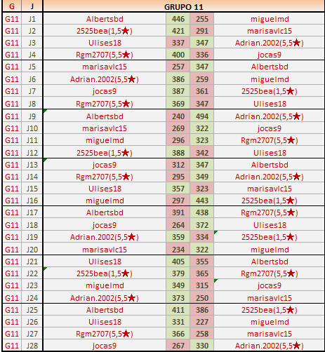 Deja un comentarioEn está página se irán publicando los resultados de las diferentes partidas, siendo ambos jugadores los responsables de subirlos, o comprobando que ya hayan sido subidos, insertando un COMENTARIO en la parte inferior de la pantalla (opción “Deja tu comentario“), indicando el nombre de los dos jugadores y los puntos obtenidos en la partida.