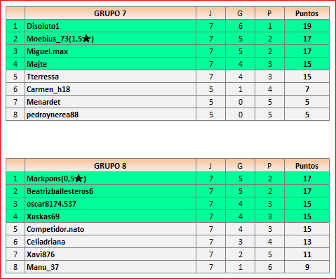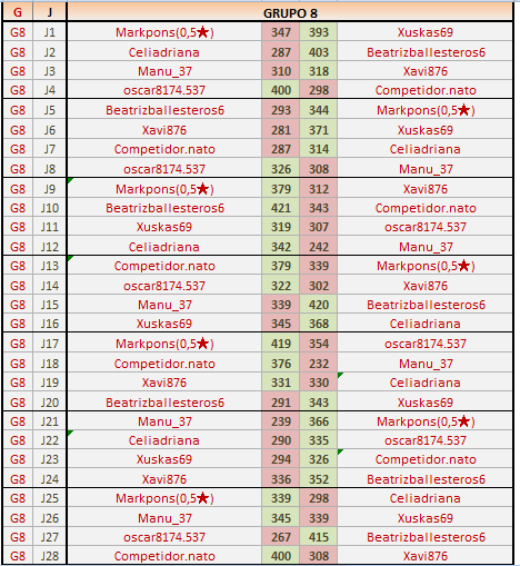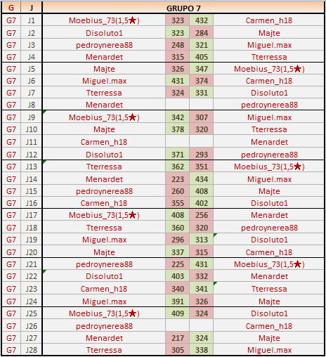 Deja un comentarioEn está página se irán publicando los resultados de las diferentes partidas, siendo ambos jugadores los responsables de subirlos, o comprobando que ya hayan sido subidos, insertando un COMENTARIO en la parte inferior de la pantalla (opción “Deja tu comentario“), indicando el nombre de los dos jugadores y los puntos obtenidos en la partida.