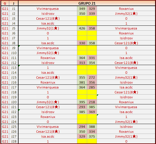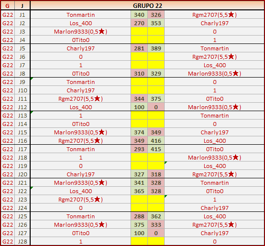 Deja un comentarioEn está página se irán publicando los resultados de las diferentes partidas, siendo ambos jugadores los responsables de subirlos, o comprobando que ya hayan sido subidos, insertando un COMENTARIO en la parte inferior de la pantalla (opción “Deja tu comentario“), indicando el nombre de los dos jugadores y los puntos obtenidos en la partida.