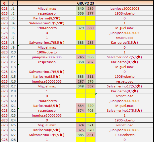 Deja un comentarioEn está página se irán publicando los resultados de las diferentes partidas, siendo ambos jugadores los responsables de subirlos, o comprobando que ya hayan sido subidos, insertando un COMENTARIO en la parte inferior de la pantalla (opción “Deja tu comentario“), indicando el nombre de los dos jugadores y los puntos obtenidos en la partida.