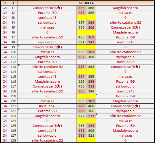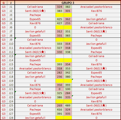 Deja un comentarioEn está página se irán publicando los resultados de las diferentes partidas, siendo ambos jugadores los responsables de subirlos, o comprobando que ya hayan sido subidos, insertando un COMENTARIO en la parte inferior de la pantalla (opción “Deja tu comentario“), indicando el nombre de los dos jugadores y los puntos obtenidos en la partida.