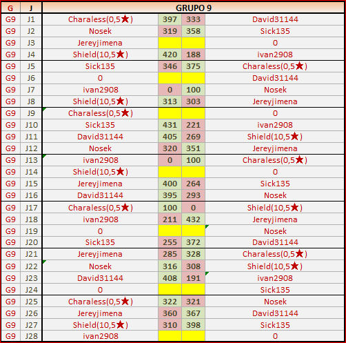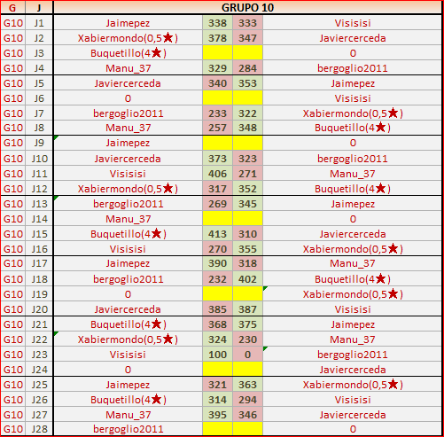 Deja un comentarioEn está página se irán publicando los resultados de las diferentes partidas, siendo ambos jugadores los responsables de subirlos, o comprobando que ya hayan sido subidos, insertando un COMENTARIO en la parte inferior de la pantalla (opción “Deja tu comentario“), indicando el nombre de los dos jugadores y los puntos obtenidos en la partida.