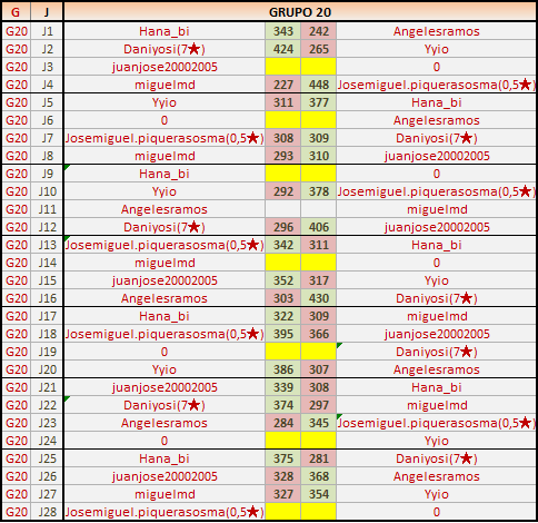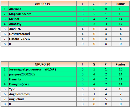 Deja un comentarioEn está página se irán publicando los resultados de las diferentes partidas, siendo ambos jugadores los responsables de subirlos, o comprobando que ya hayan sido subidos, insertando un COMENTARIO en la parte inferior de la pantalla (opción “Deja tu comentario“), indicando el nombre de los dos jugadores y los puntos obtenidos en la partida.