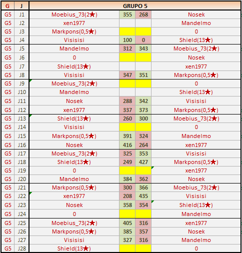Deja un comentarioEn está página se irán publicando los resultados de las diferentes partidas, siendo ambos jugadores los responsables de subirlos, o comprobando que ya hayan sido subidos, insertando un COMENTARIO en la parte inferior de la pantalla (opción “Deja tu comentario“), indicando el nombre de los dos jugadores y los puntos obtenidos en la partida.