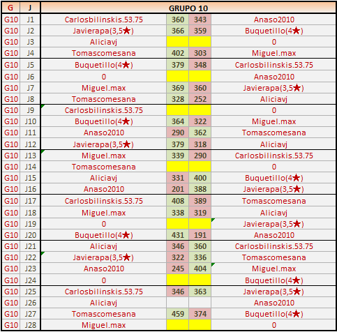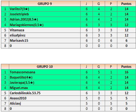 Deja un comentarioEn está página se irán publicando los resultados de las diferentes partidas, siendo ambos jugadores los responsables de subirlos, o comprobando que ya hayan sido subidos, insertando un COMENTARIO en la parte inferior de la pantalla (opción “Deja tu comentario“), indicando el nombre de los dos jugadores y los puntos obtenidos en la partida.