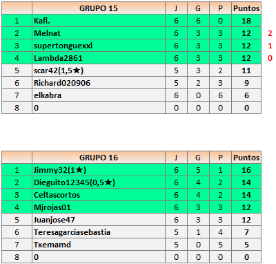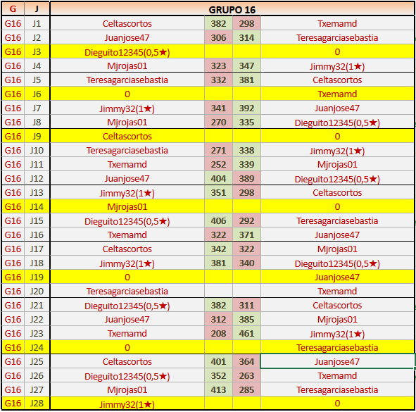 Deja un comentarioEn está página se irán publicando los resultados de las diferentes partidas, siendo ambos jugadores los responsables de subirlos, o comprobando que ya hayan sido subidos, insertando un COMENTARIO en la parte inferir de la pantalla (opción «Deja tu comentario»), indicando el nombre de los dos jugadores y los puntos obtenidos en la partida.