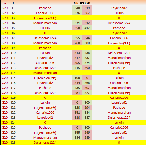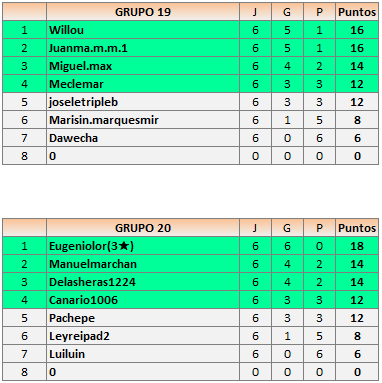 Deja un comentarioEn está página se irán publicando los resultados de las diferentes partidas, siendo ambos jugadores los responsables de subirlos, o comprobando que ya hayan sido subidos, insertando un COMENTARIO en la parte inferir de la pantalla (opción «Deja tu comentario»), indicando el nombre de los dos jugadores y los puntos obtenidos en la partida.