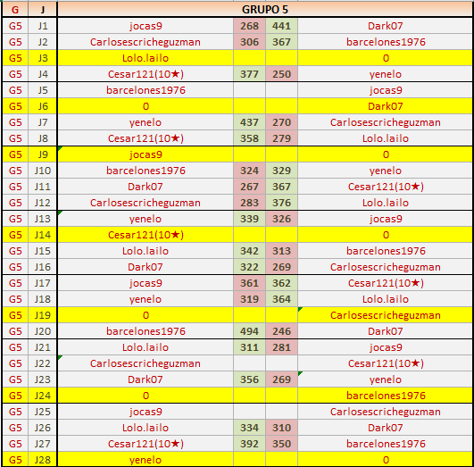 5En está página se irán publicando los resultados de las diferentes partidas, siendo ambos jugadores los responsables de subirlos, o comprobando que ya hayan sido subidos, insertando un COMENTARIO en la parte inferir de la pantalla (opción «Deja tu comentario»), indicando el nombre de los dos jugadores y los puntos obtenidos en la partida.