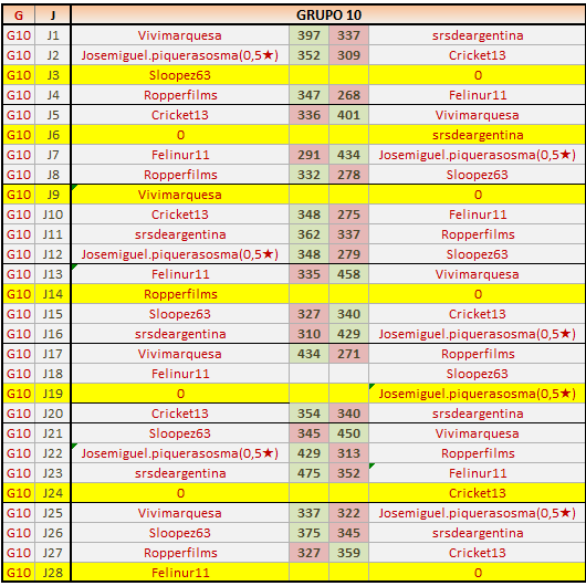 Deja un comentarioEn está página se irán publicando los resultados de las diferentes partidas, siendo ambos jugadores los responsables de subirlos, o comprobando que ya hayan sido subidos, insertando un COMENTARIO en la parte inferir de la pantalla (opción «Deja tu comentario»), indicando el nombre de los dos jugadores y los puntos obtenidos en la partida.