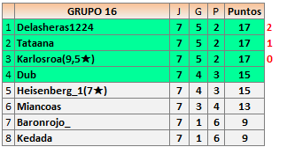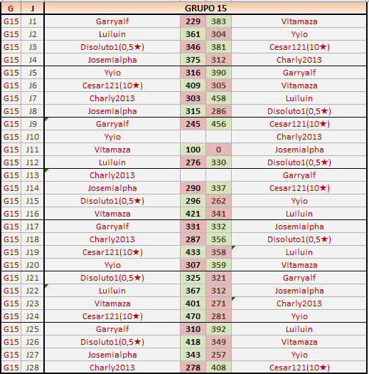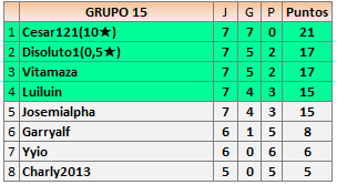 Deja un comentarioEn está página se irán publicando los resultados de las diferentes partidas, siendo ambos jugadores los responsables de subirlos, o comprobando que ya hayan sido subidos, insertando un COMENTARIO en la parte inferior de la pantalla (opción «Deja tu comentario»), indicando el nombre de los dos jugadores y los puntos obtenidos en la partida.