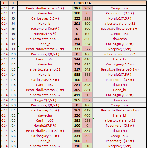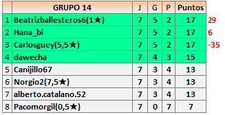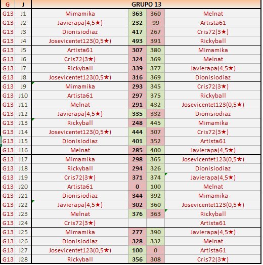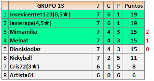 Deja un comentarioEn está página se irán publicando los resultados de las diferentes partidas, siendo ambos jugadores los responsables de subirlos, o comprobando que ya hayan sido subidos, insertando un COMENTARIO en la parte inferior de la pantalla (opción «Deja tu comentario»), indicando el nombre de los dos jugadores y los puntos obtenidos en la partida.