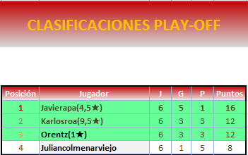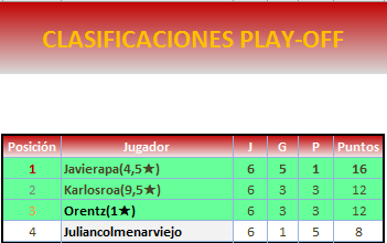 Enhorabuena a los 4 participantes del play off. Sois grandes.
