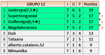 Deja un comentarioEn está página se irán publicando los resultados de las diferentes partidas, siendo ambos jugadores responsables de subirlos o de comprobar que ya hayan sido publicados insertando un COMENTARIO en la parte inferior de la pantalla (opción “Deja tu comentario”), indicando el nombre de los dos jugadores y los puntos obtenidos en la partida.
