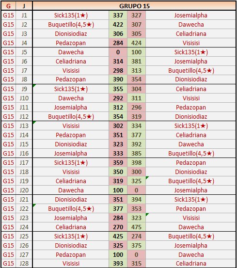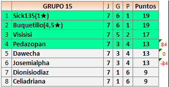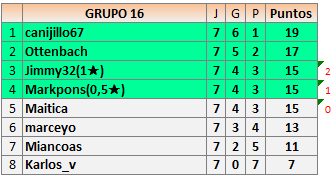 Deja un comentarioEn está página se irán publicando los resultados de las diferentes partidas, siendo ambos jugadores responsables de subirlos o de comprobar que ya hayan sido publicados insertando un COMENTARIO en la parte inferior de la pantalla (opción “Deja tu comentario”), indicando el nombre de los dos jugadores y los puntos obtenidos en la partida.
