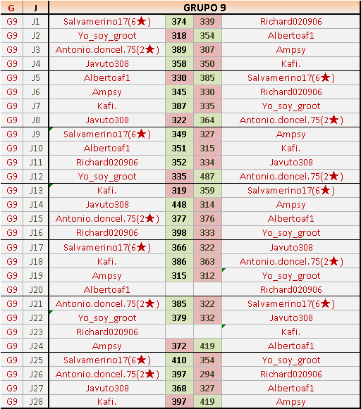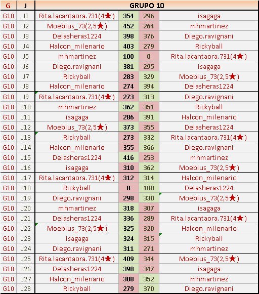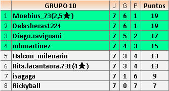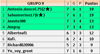 Deja un comentarioEn está página se irán publicando los resultados de las diferentes partidas, siendo ambos jugadores responsables de subirlos o de comprobar que ya hayan sido publicados insertando un COMENTARIO en la parte inferior de la pantalla (opción “Deja tu comentario”), indicando el nombre de los dos jugadores y los puntos obtenidos en la partida.