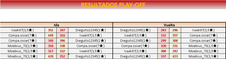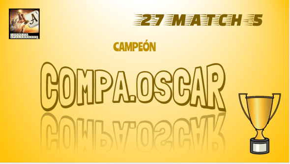 En hora buena a todos los que participaron en este playooff , gran merito a oscar por ganarme dos veces en el match5 ahi te ganaste el campeonato jajaja ,……me quedo con las ganas ya habra revanchas…