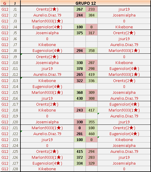 1En está página se irán publicando los resultados de las diferentes partidas, siendo ambos jugadores responsables de subirlos o de comprobar que ya hayan sido publicados insertando un COMENTARIO en la parte inferior de la pantalla (opción “Deja tu comentario”), indicando el nombre de los dos jugadores y los puntos obtenidos en la partida.