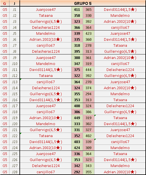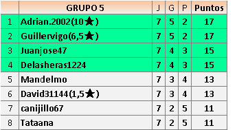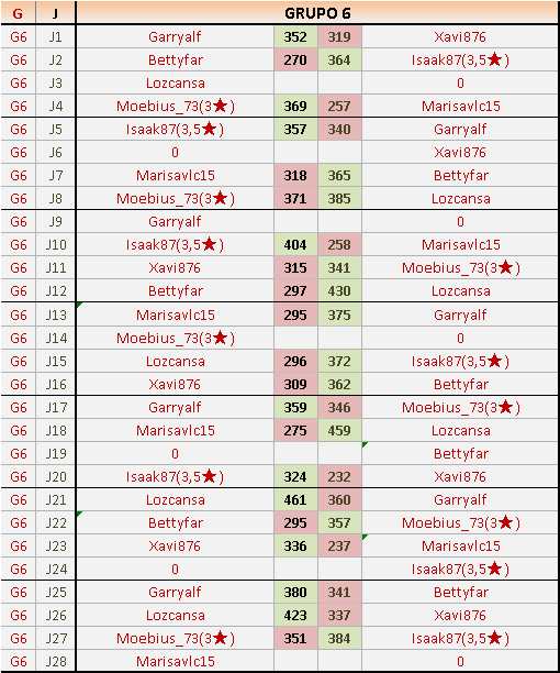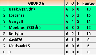 Deja un comentarioEn está página se irán publicando los resultados de las diferentes partidas, siendo ambos jugadores responsables de subirlos o de comprobar que ya hayan sido publicados insertando un COMENTARIO en la parte inferior de la pantalla (opción “Deja tu comentario”), indicando el nombre de los dos jugadores y los puntos obtenidos en la partida.