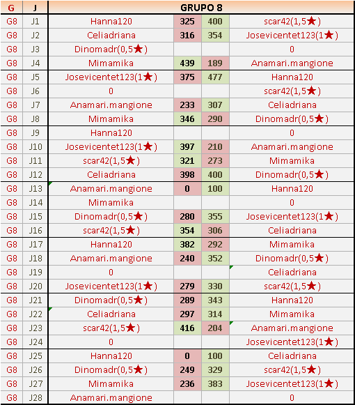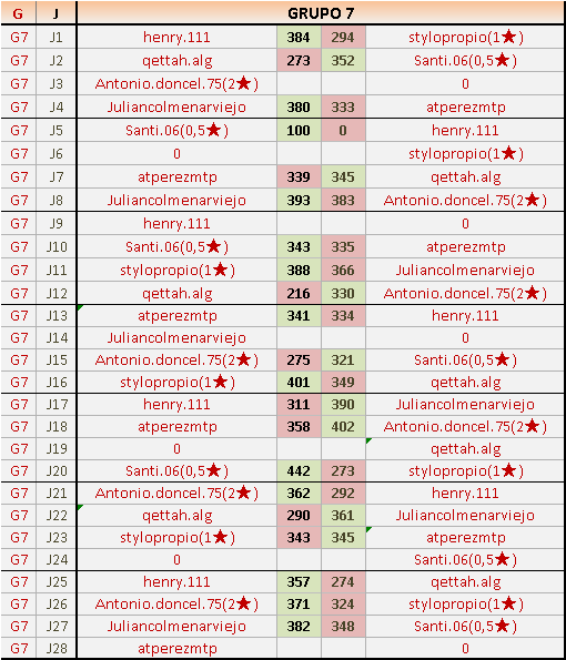 Deja un comentarioEn está página se irán publicando los resultados de las diferentes partidas, siendo ambos jugadores responsables de subirlos o de comprobar que ya hayan sido publicados insertando un COMENTARIO en la parte inferior de la pantalla (opción “Deja tu comentario”), indicando el nombre de los dos jugadores y los puntos obtenidos en la partida.