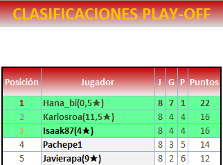 Gracias y enhorabuena también para vosotros y el resto de finalistas, ha sido un lujo compartir un playoff con todos, lo he pasado genial jugando!! Y cómo no a la organización por su trabajo.