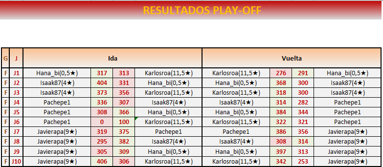 Felicidades a Hana_bi. Intratable por lo que veo en este playoff. También a la administración por la organización.