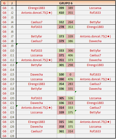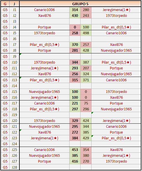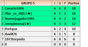 Deja un comentarioEn está página se irán publicando los resultados de las diferentes partidas, siendo ambos jugadores responsables de subirlos o de comprobar que ya hayan sido publicados insertando un COMENTARIO en la parte inferior de la pantalla (opción “Deja tu comentario”), indicando el nombre de los dos jugadores y los puntos obtenidos en la partida.