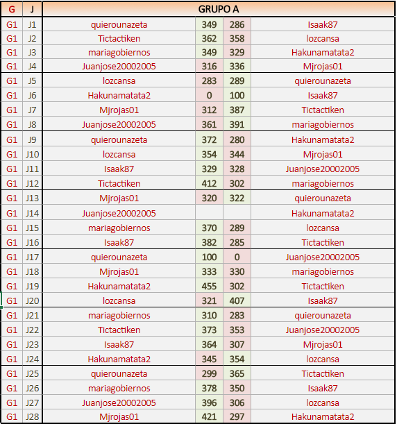 Deja un comentarioES OBLIGATORIO RESPETAR EL ORDEN LOCAL (IZQ) Y VISITANTE (DER), ASÍ COMO INDICAR EL GRUPO CORRESPONDIENTE Y LOS NÚMEROS DE JORNADA.