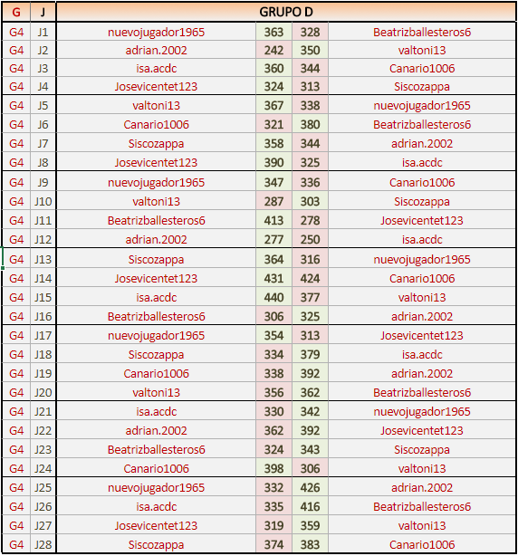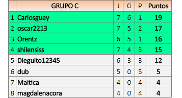 Deberiais revisar los resultados pues mi resultado con magdalenacora lo envíe a la vez que el último con Dieguito