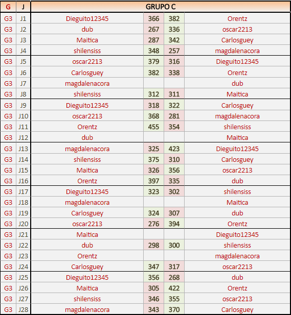 Deberiais revisar los resultados pues mi resultado con magdalenacora lo envíe a la vez que el último con Dieguito