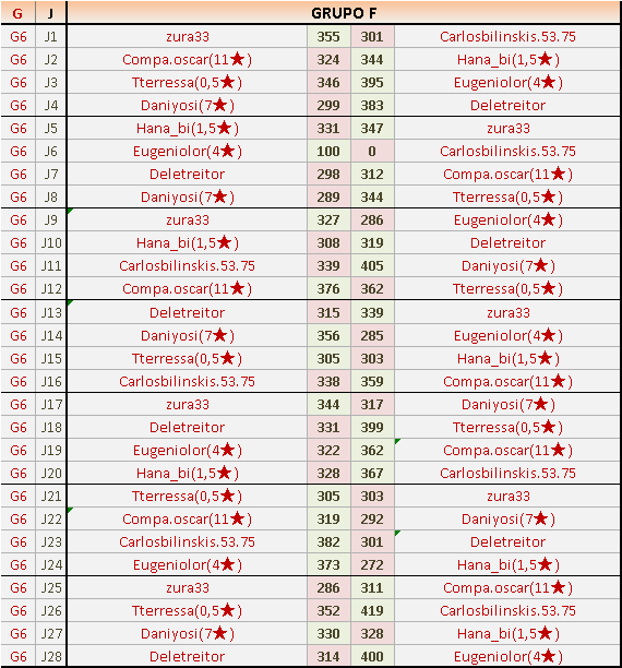 Deja un comentarioES OBLIGATORIO RESPETAR EL ORDEN LOCAL (IZQ) Y VISITANTE (DER), ASÍ COMO INDICAR EL GRUPO CORRESPONDIENTE Y LOS NÚMEROS DE JORNADA.
