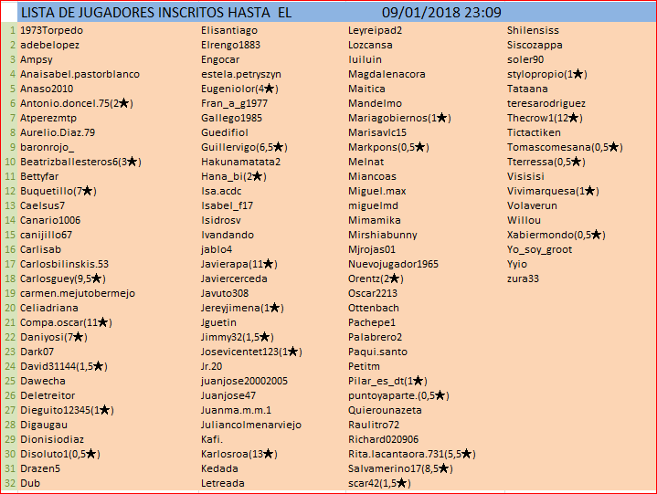 Inicio del torneo : 11 Enero