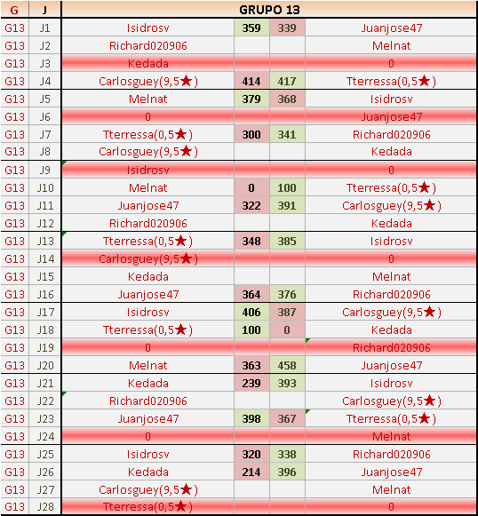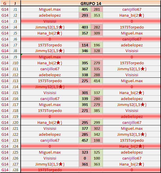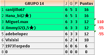 Deja un comentarioEn está página se irán publicando los resultados de las diferentes partidas, siendo ambos jugadores responsables de subirlos o de comprobar que ya hayan sido publicados insertando un COMENTARIO en la parte inferior de la pantalla (opción “Deja tu comentario”), indicando el nombre de los dos jugadores y los puntos obtenidos en la partida.