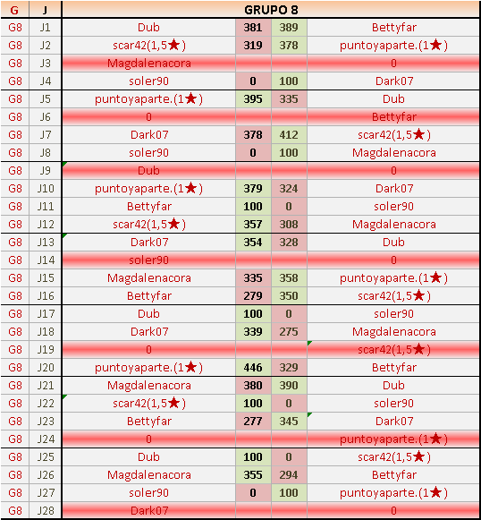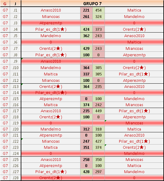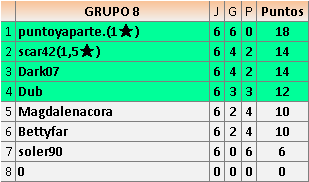 Deja un comentarioEn está página se irán publicando los resultados de las diferentes partidas, siendo ambos jugadores responsables de subirlos o de comprobar que ya hayan sido publicados insertando un COMENTARIO en la parte inferior de la pantalla (opción “Deja tu comentario”), indicando el nombre de los dos jugadores y los puntos obtenidos en la partida.