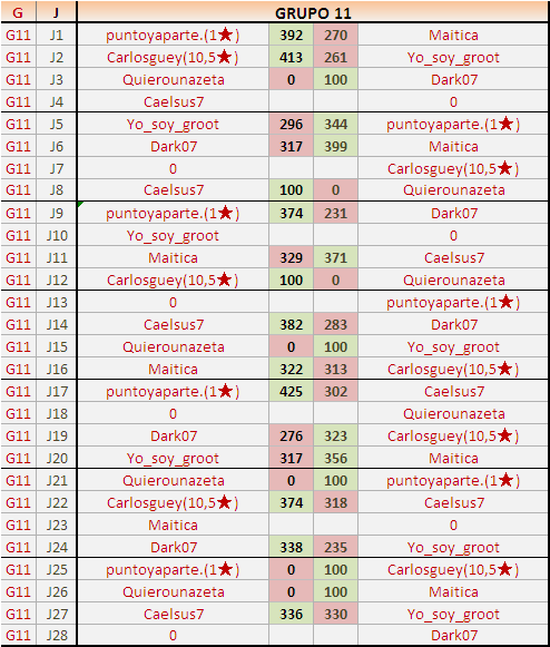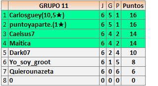 Deja un comentarioEn está página se irán publicando los resultados de las diferentes partidas, siendo ambos jugadores responsables de subirlos o de comprobar que ya hayan sido publicados insertando un COMENTARIO en la parte inferior de la pantalla (opción “Deja tu comentario”), indicando el nombre de los dos jugadores y los puntos obtenidos en la partida.