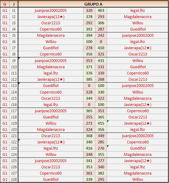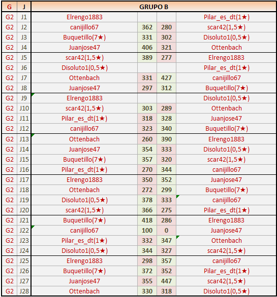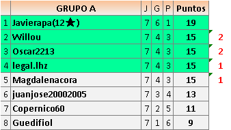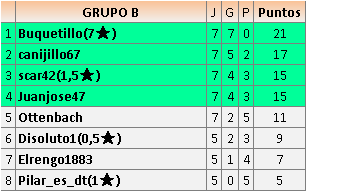 Ante la retirada del jugador Buquetillo en el grupo B, Todos lo s jugadores suben un puesto, quedando los clasificados para cruces como sigue: