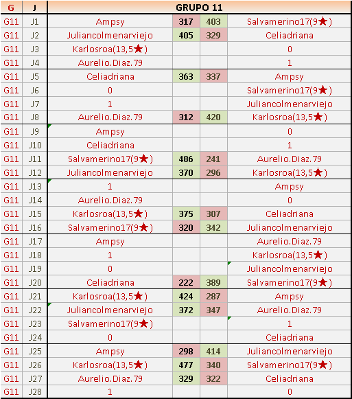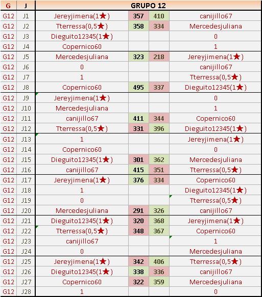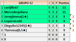 Deja un comentarioEn está página se irán publicando los resultados de las diferentes partidas, siendo ambos jugadores responsables de subirlos o de comprobar que ya hayan sido publicados insertando un COMENTARIO en la parte inferior de la pantalla (opción “Deja tu comentario”), indicando el nombre de los dos jugadores y los puntos obtenidos en la partida.
