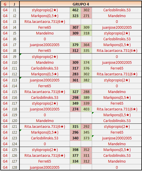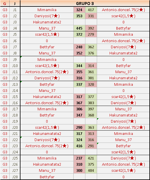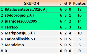 Deja un comentarioEn está página se irán publicando los resultados de las diferentes partidas, siendo ambos jugadores responsables de subirlos o de comprobar que ya hayan sido publicados insertando un COMENTARIO en la parte inferior de la pantalla (opción “Deja tu comentario”), indicando el nombre de los dos jugadores y los puntos obtenidos en la partida.