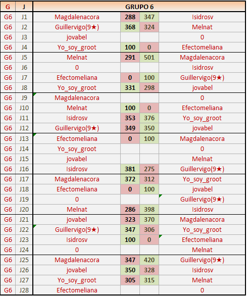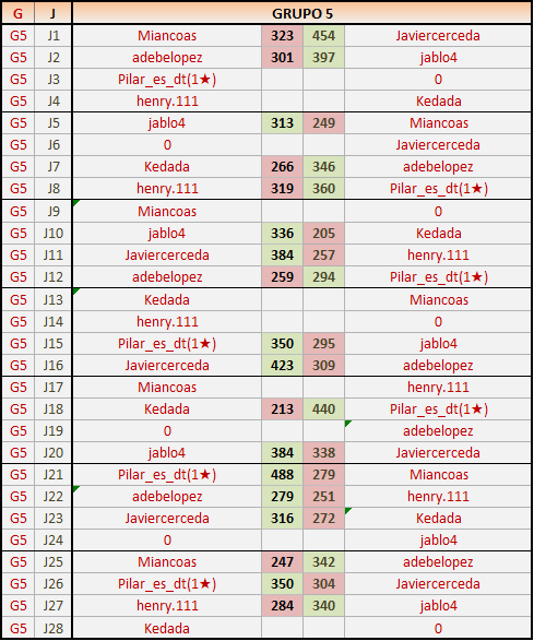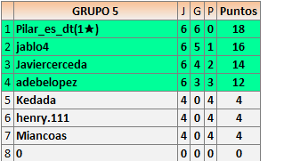 Deja un comentarioEn está página se irán publicando los resultados de las diferentes partidas, siendo ambos jugadores responsables de subirlos o de comprobar que ya hayan sido publicados insertando un COMENTARIO en la parte inferior de la pantalla (opción “Deja tu comentario”), indicando el nombre de los dos jugadores y los puntos obtenidos en la partida.
