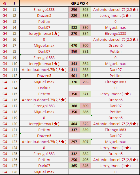 Deja un comentarioEn está página se irán publicando los resultados de las diferentes partidas, siendo ambos jugadores responsables de subirlos o de comprobar que ya hayan sido publicados insertando un COMENTARIO en la parte inferior de la pantalla (opción “Deja tu comentario”), indicando el nombre de los dos jugadores y los puntos obtenidos en la partida.