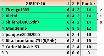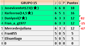 Deja un comentarioEn está página se irán publicando los resultados de las diferentes partidas, siendo ambos jugadores responsables de subirlos o de comprobar que ya hayan sido publicados insertando un COMENTARIO en la parte inferior de la pantalla (opción “Deja tu comentario”), indicando el nombre de los dos jugadores y los qpuntos obtenidos en la partida.