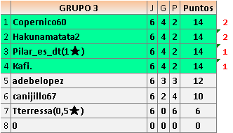 Deja un comentarioEn está página se irán publicando los resultados de las diferentes partidas, siendo ambos jugadores responsables de subirlos o de comprobar que ya hayan sido publicados insertando un COMENTARIO en la parte inferior de la pantalla (opción “Deja tu comentario”), indicando el nombre de los dos jugadores y los puntos obtenidos en la partida.