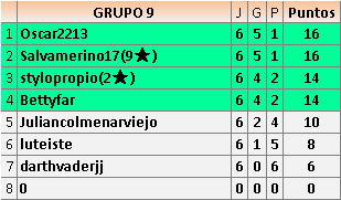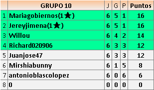 Deja un comentarioEn está página se irán publicando los resultados de las diferentes partidas, siendo ambos jugadores responsables de subirlos o de comprobar que ya hayan sido publicados insertando un COMENTARIO en la parte inferior de la pantalla (opción “Deja tu comentario”), indicando el nombre de los dos jugadores y los puntos obtenidos en la partida.