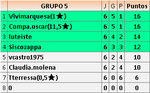 Deja un comentarioEn está página se irán publicando los resultados de las diferentes partidas, siendo ambos jugadores responsables de subirlos o de comprobar que ya hayan sido publicados insertando un COMENTARIO en la parte inferior de la pantalla (opción “Deja tu comentario”), indicando el nombre de los dos jugadores y los puntos obtenidos en la partida.