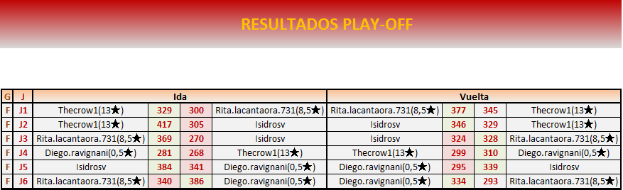 En los playoffs se mantendrán ocultos los resultados para que ningún jugador especule con ellos.