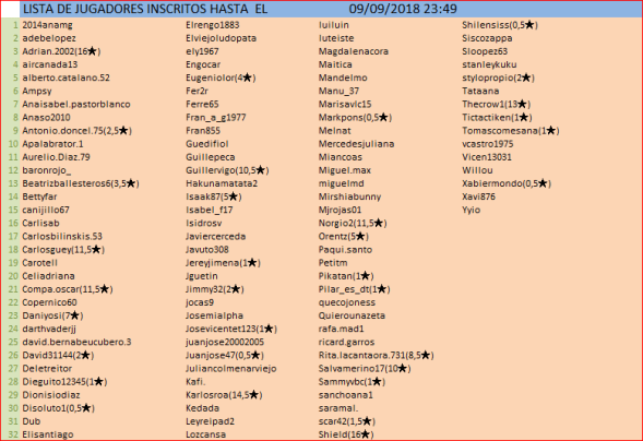Deja un comentarioInicio del torneo : 11 Septiembre