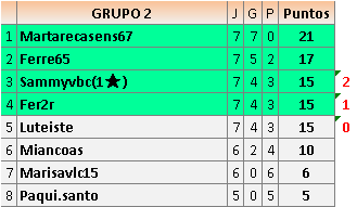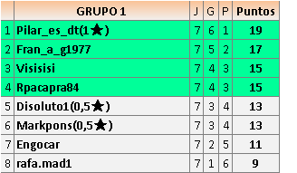 Deja un comentarioEn está página se irán publicando los resultados de las diferentes partidas, siendo ambos jugadores responsables de subirlos o de comprobar que ya hayan sido publicados insertando un COMENTARIO en la parte inferior de la pantalla (opción “Deja tu comentario”), indicando el nombre de los dos jugadores y los puntos obtenidos en la partida.